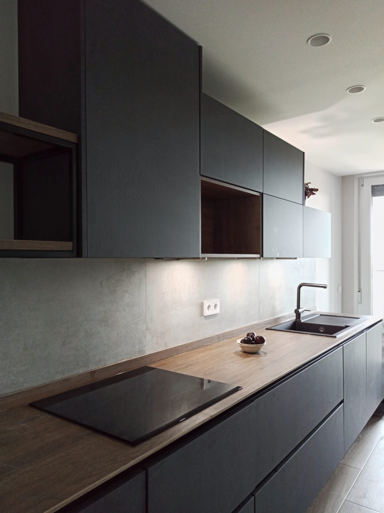 In Project Planetarium, we wanted to design a kitchen that made a difference and opened the space toward the living room, without losing functionality but taking good care of aesthetics and appeasing our client's preferences.