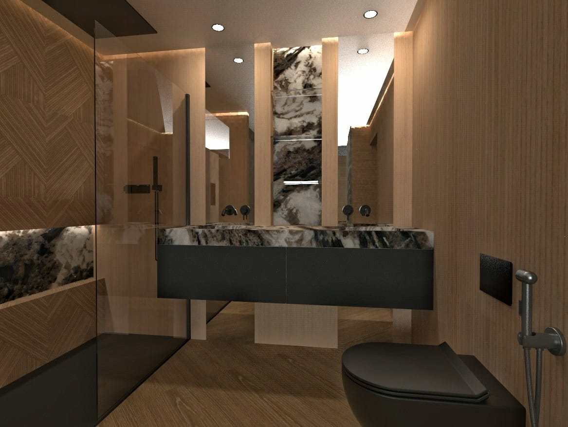 Diseño de todas las estancias, manteniendo un hilo conductor de equilibrio entre color e iluminación. Mención aparte del diseño de frente de armarios en pasillo.