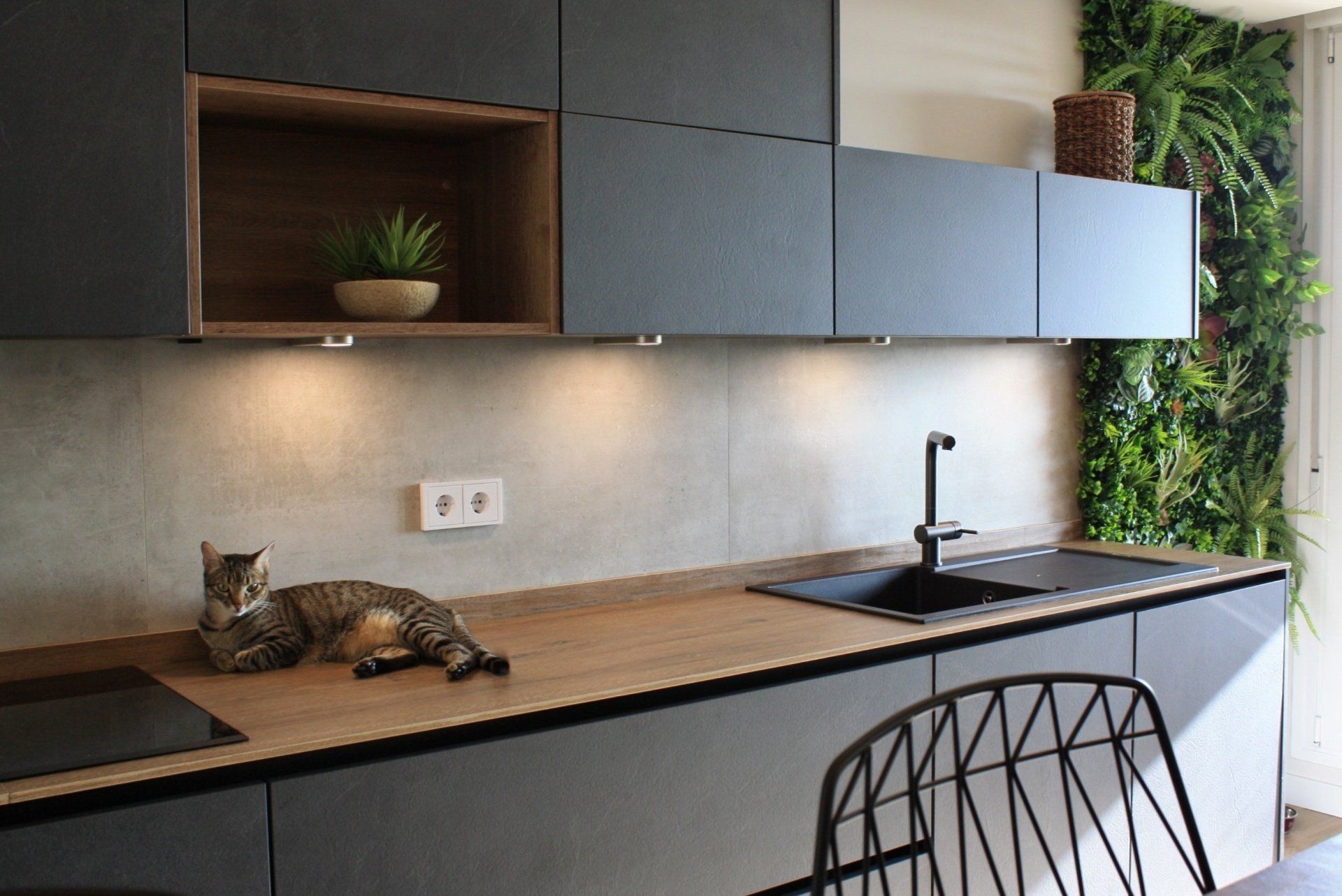 En el Proyecto Planetario, quisimos hacer una cocina distinta y abrir el espacio al salón sin perder funcionalidad pero cuidando mucho la estética y manteniéndola en la línea del cliente.